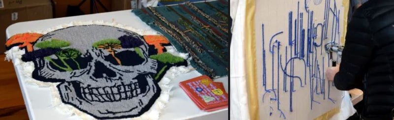 In this hands-on instructional class, participants will learn to use power tufting machines to create a rug or wall hanging. The 5-hour class will cover the basics of setting up a tufting frame with stretched primary cloth and threading and operating tufting machines. Instructions for how to cut, glue, and finish a tufted piece will also be provided.